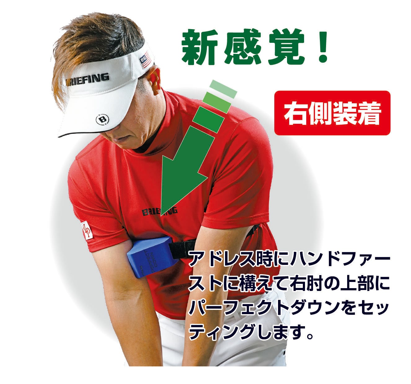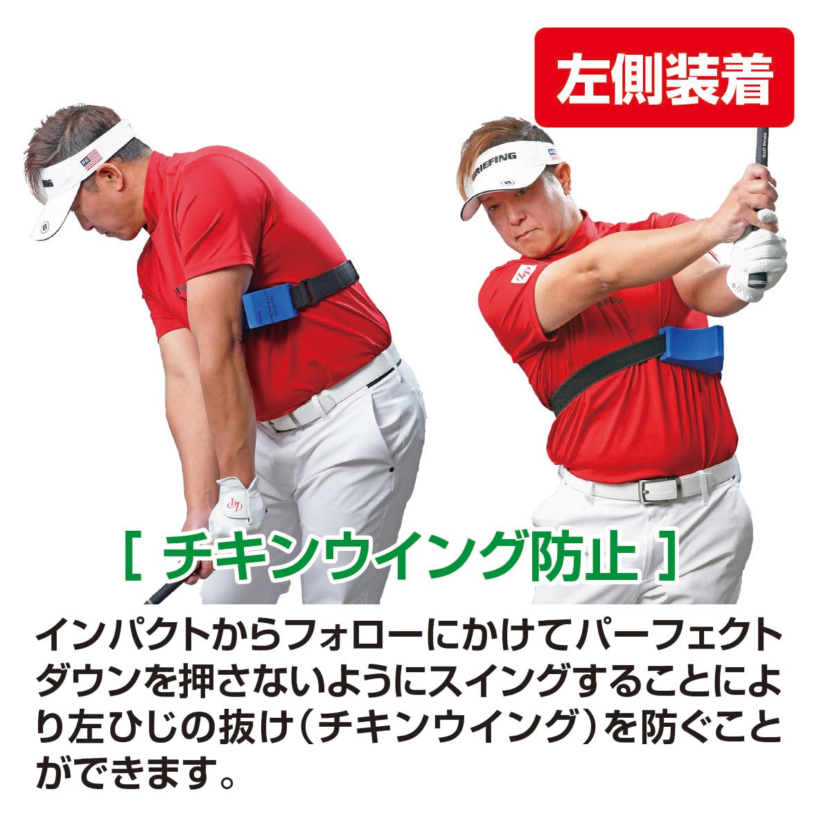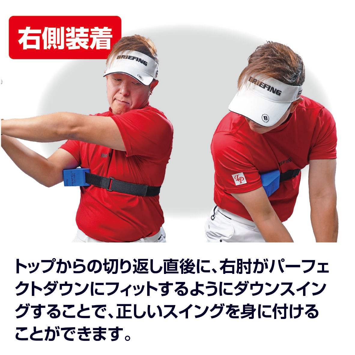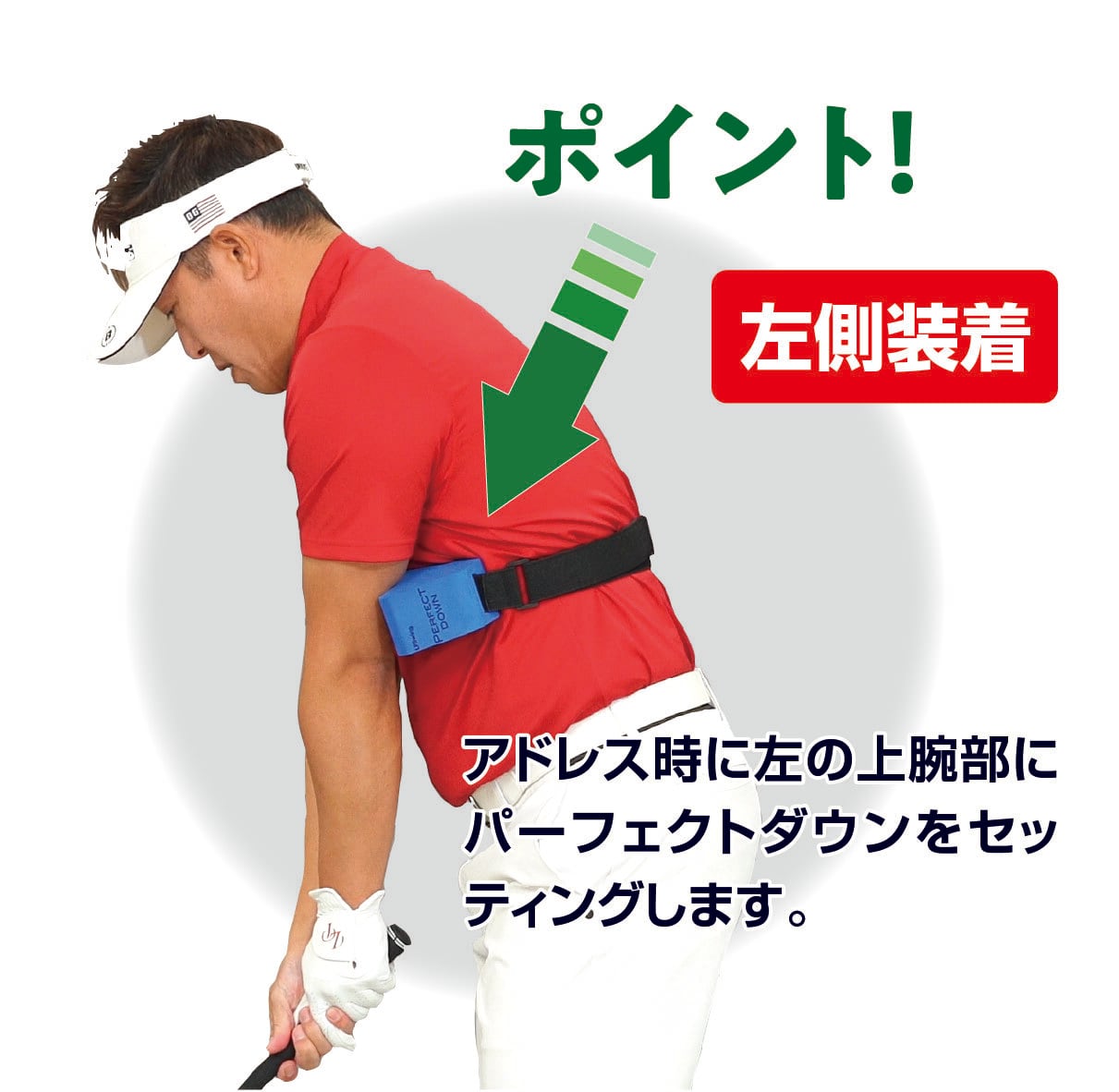 パーフェクトダウンは、トップからダウンスイングに入る「ほんの一瞬」に着目し、そのタイミングで右腕を正しく使えるよう設計されたトレーニング器具です。右腕を理想的なポジションへ導くことで、クラブヘッドを自然にインサイドから下ろせ、アウトサイドからの振り下ろしによるスライスや打点のブレを抑えます。左側に設置すると、インパクト以降のフォロースイングで左肘が引けてしまう、いわゆるチキンウイングを防ぎ、美しく力強いフィニッシュへとつなげます。この器具を使用することで、両腕と体幹の動きの連動が整い、毎回同じタイミングと軌道で振れる再現性の高いスイングを身につけることができます。芯でとらえる確率が上がり、方向性の安定と、ヘッドスピードが効率よくボール初速に伝わることで飛距離アップも期待できます。さらに、フォロースルーが大きく伸びることで、見た目にもバランスの良いスイングフォームが身につきます。